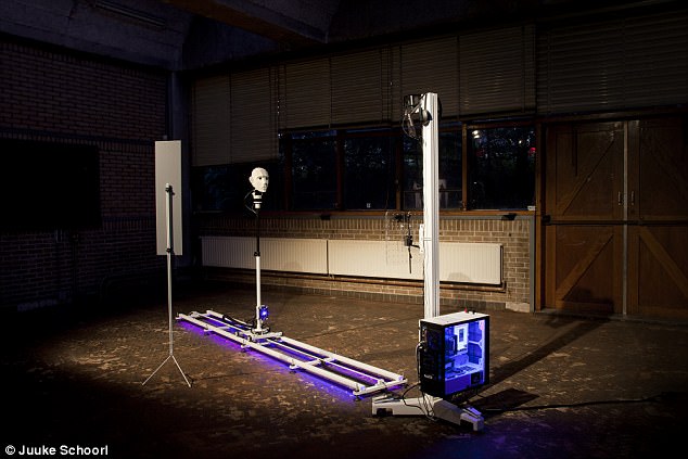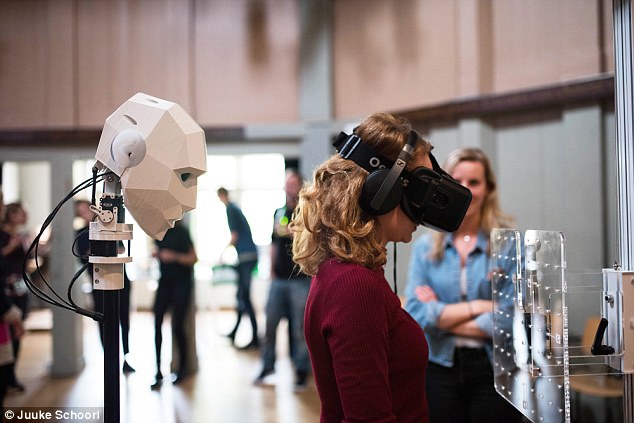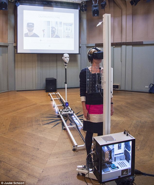 机器人实时模拟用户的头部运动,还有两个麦克风位于脸的两侧。用户可以环顾四周,体验自身的移动。此外,还有一个自动锤子,每秒钟敲击胸部以模仿心跳。Kolkman还在轨道末尾放了一面镜子,让用户可以看到反射的画面。这些都有助于让体验变得更加真实。