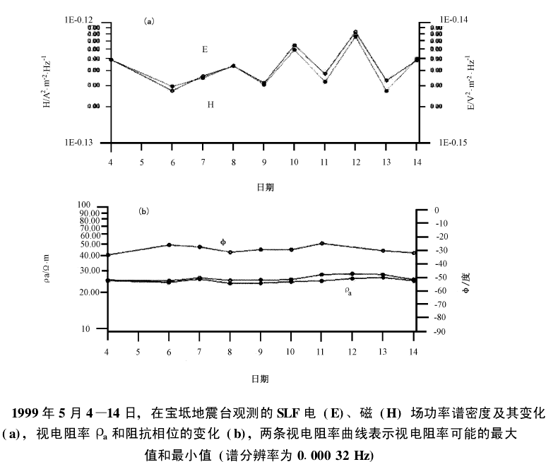图9  1999年5月12迁安4.2级地震震前人工甚低频电磁观测异常(图片来源:赵国泽,2003)