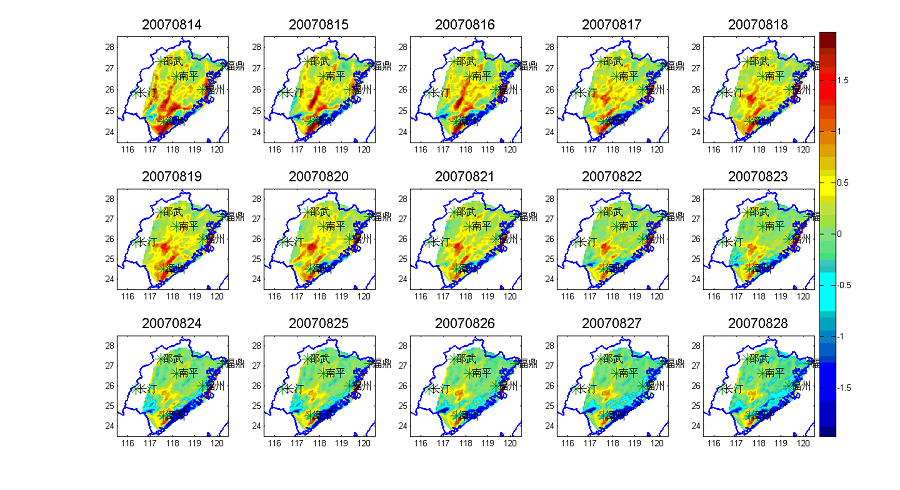 图3  2007年8月29日福建永春4.6级地震前地脉动噪声层析成像动态变化图(图片来源:福建省地震局2011)