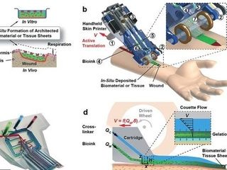 加拿大多伦多大学研究人员开发出一种手持便携式3D皮肤打印机,可以打印出多层皮肤组织,以覆盖和治愈深度伤口...
